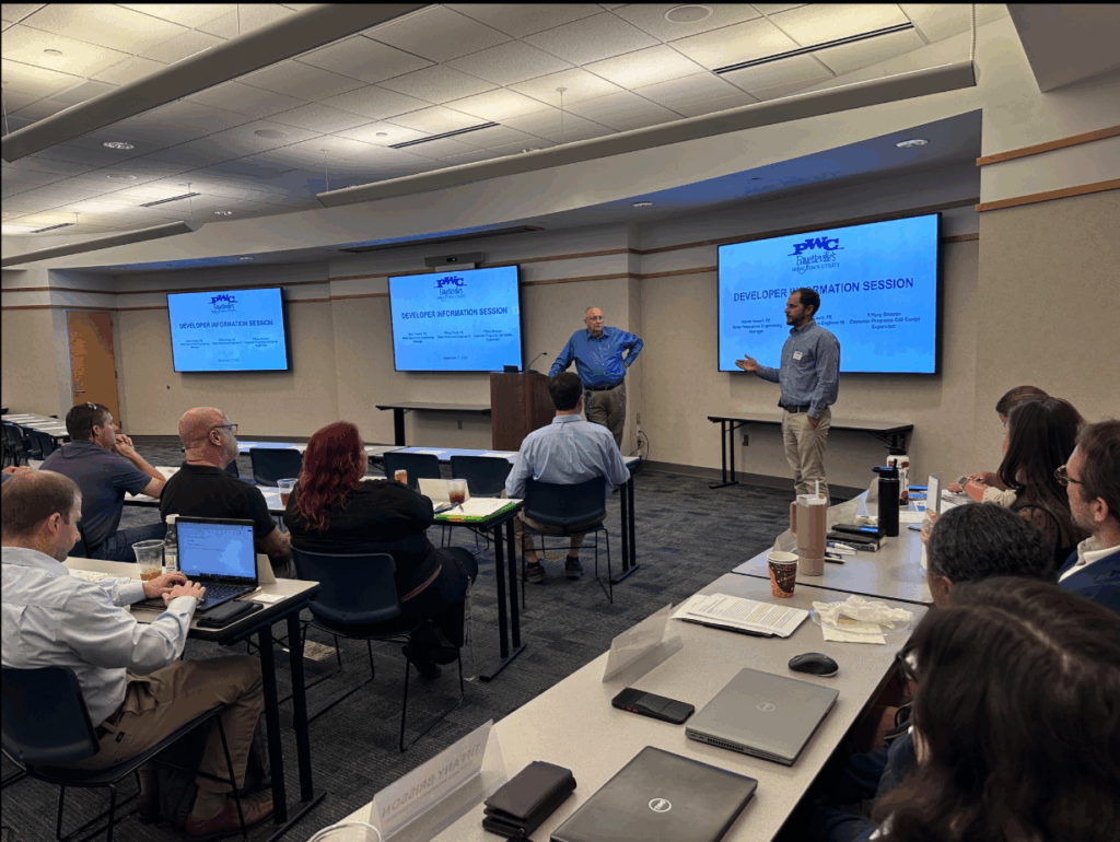 Sept. 17, 2025: PWC’s Water Engineering team hosted a meeting for local developers to walk through the design plan submittal process to clarify expectations and technical requirements. Attendees learned about best practices to streamline the process, participated in Q&A with engineering experts, and learned how PWC’s staff is committed to ensuring the needs of all involved are met. This collaborative approach strengthens these relationships and improves project outcomes, which ultimately benefits the community we all serve.