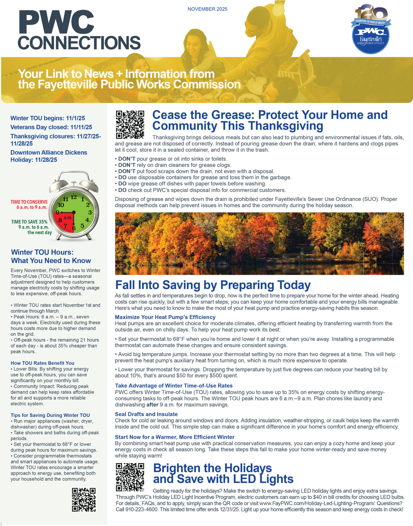 Bill Message: With major holidays around the corner, PWC would like to remind customers that you can easily report potential utility scams to help keep our community safe & secure. Learn more by visiting FayPWC.com/Utility-Scams/